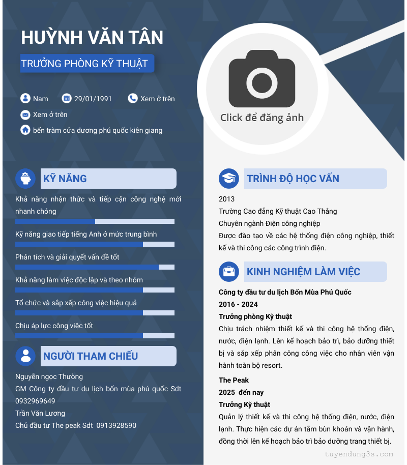 Vị trí: Trưởng phòng Kỹ thuật