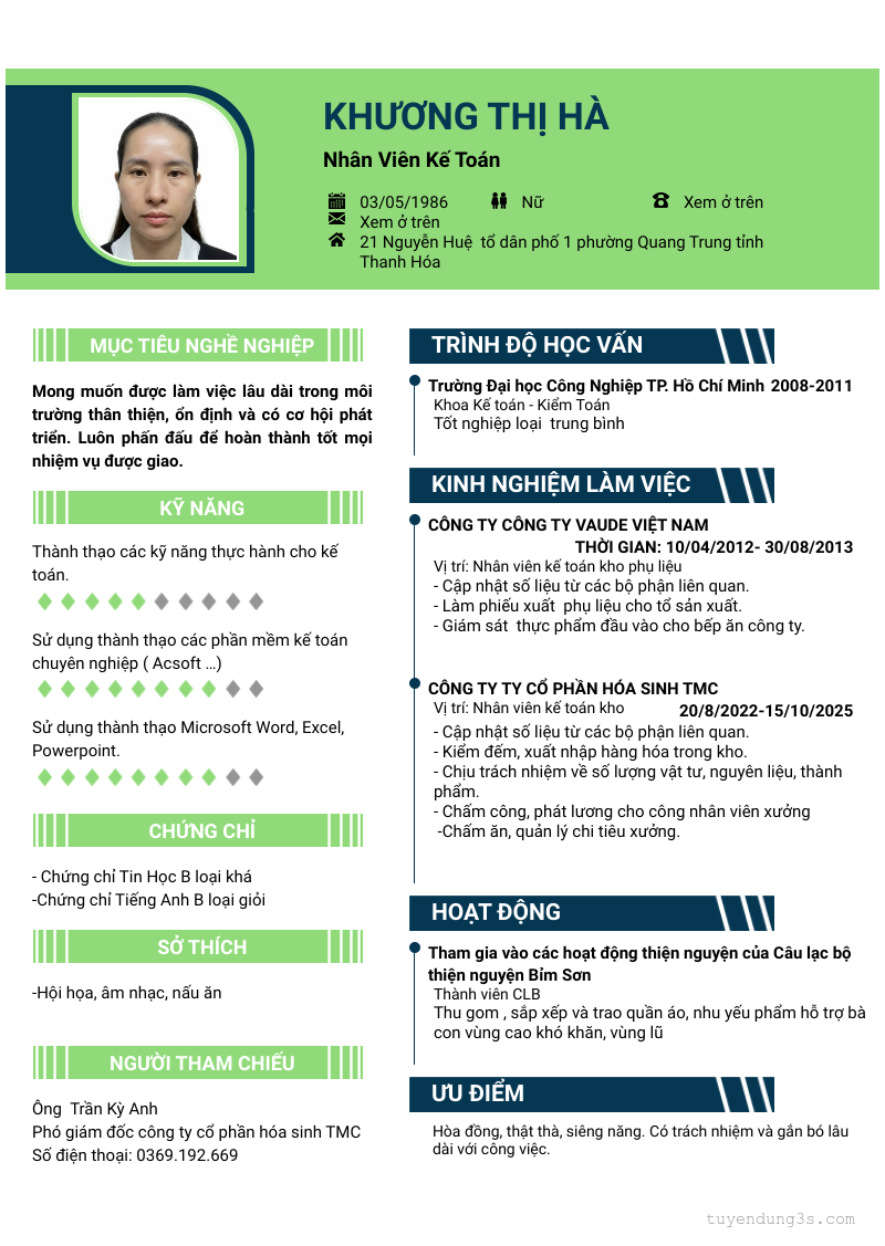 Mở xem thông tin đầy đủ ứng viên Khương Thị Hà chỉ với 2 điểm. Ứng viên được cập nhật ngày 09/10/2025