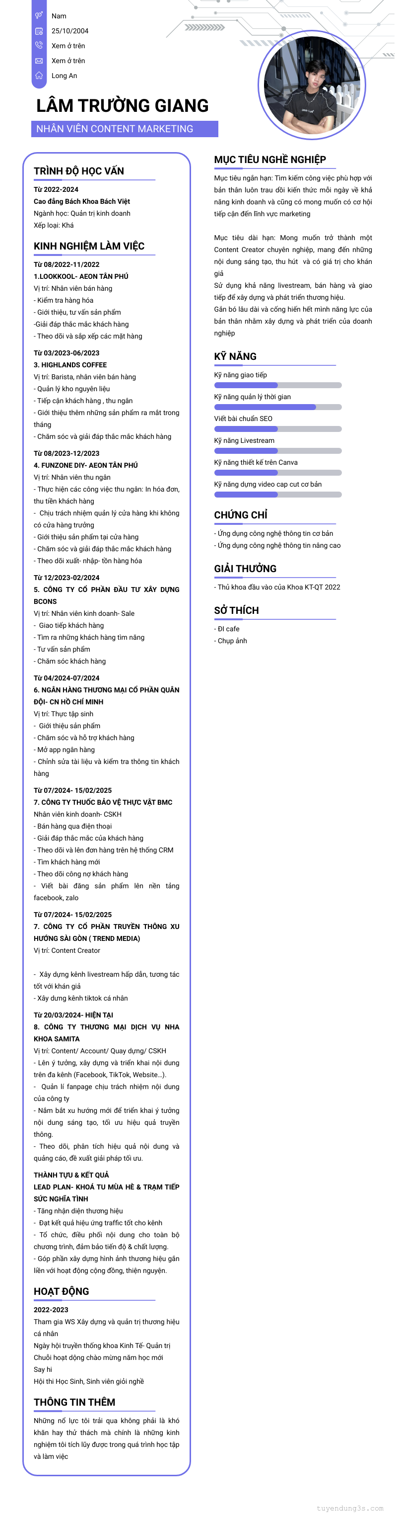 Mở xem thông tin đầy đủ ứng viên Lâm Trường Giang chỉ với 2 điểm. Ứng viên được cập nhật ngày 21/09/2025