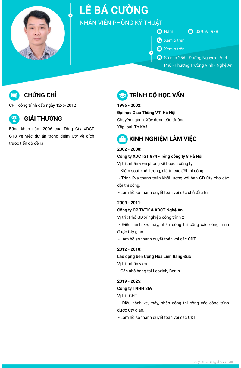 Mở xem thông tin đầy đủ ứng viên Lê Bá Cường chỉ với 2 điểm. Ứng viên được cập nhật ngày 30/11/2025