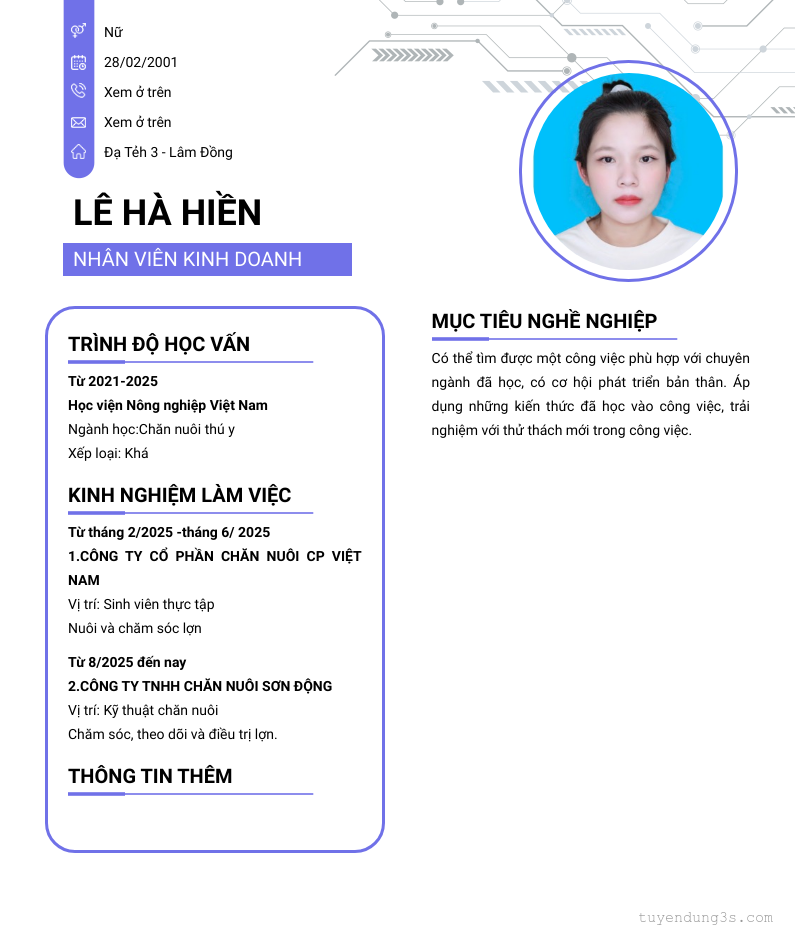Mở xem thông tin đầy đủ ứng viên Lê Hà Hiền chỉ với 2 điểm. Ứng viên được cập nhật ngày 15/10/2025