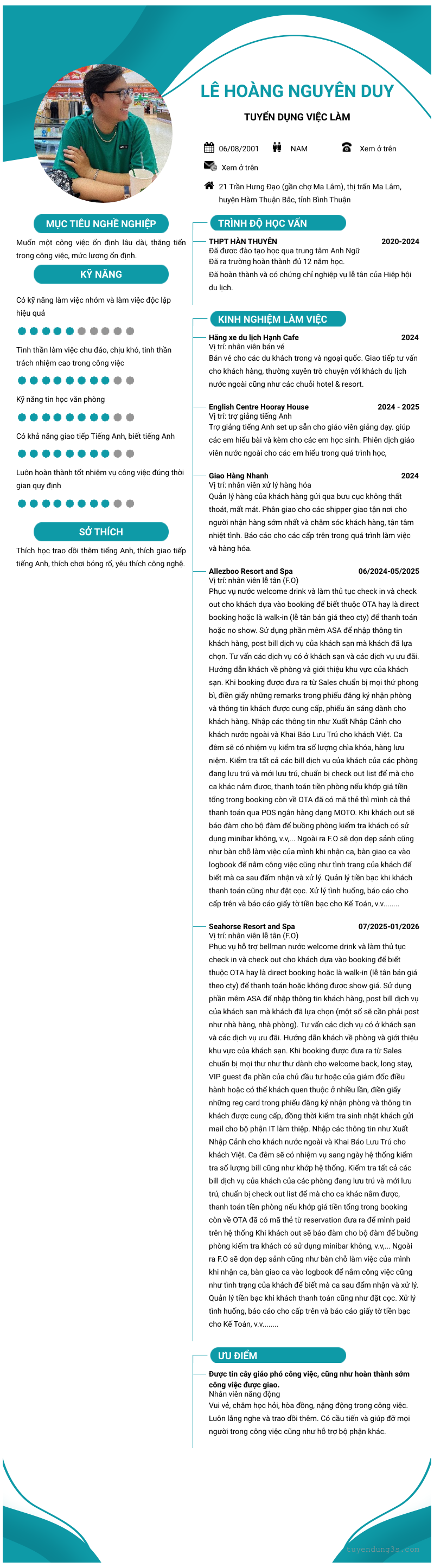 Mở xem thông tin đầy đủ ứng viên LÊ HOÀNG NGUYÊN DUY chỉ với 2 điểm. Ứng viên được cập nhật ngày 02/02/2026