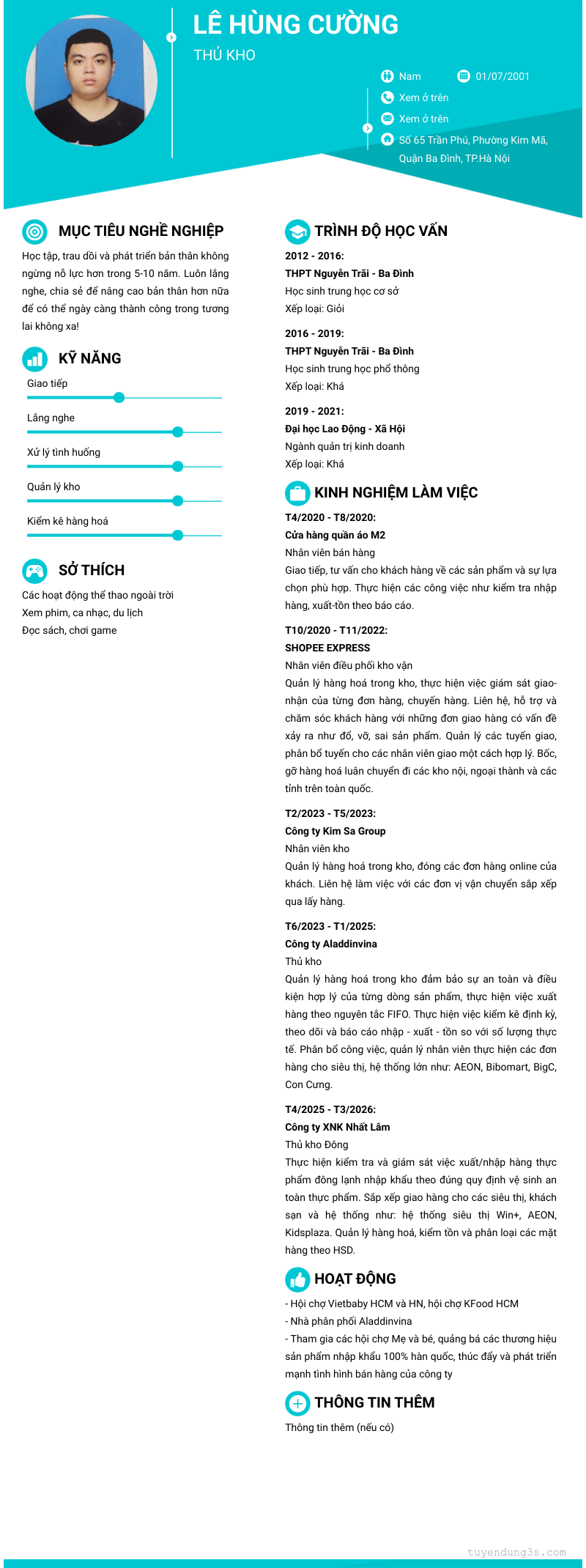Kinh nghiệm: Hơn 5 năm kinh nghiệm