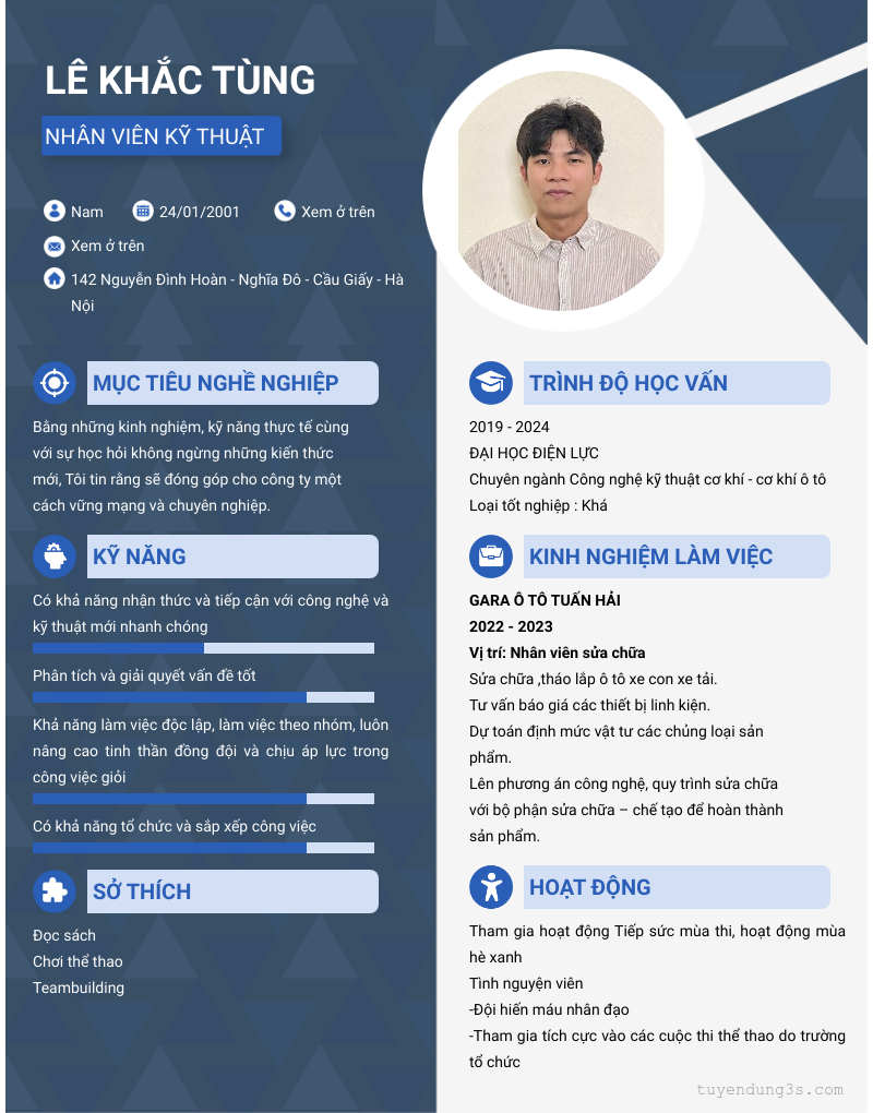 Mở xem thông tin đầy đủ ứng viên Lê Khắc Tùng chỉ với 2 điểm. Ứng viên được cập nhật ngày 21/07/2024