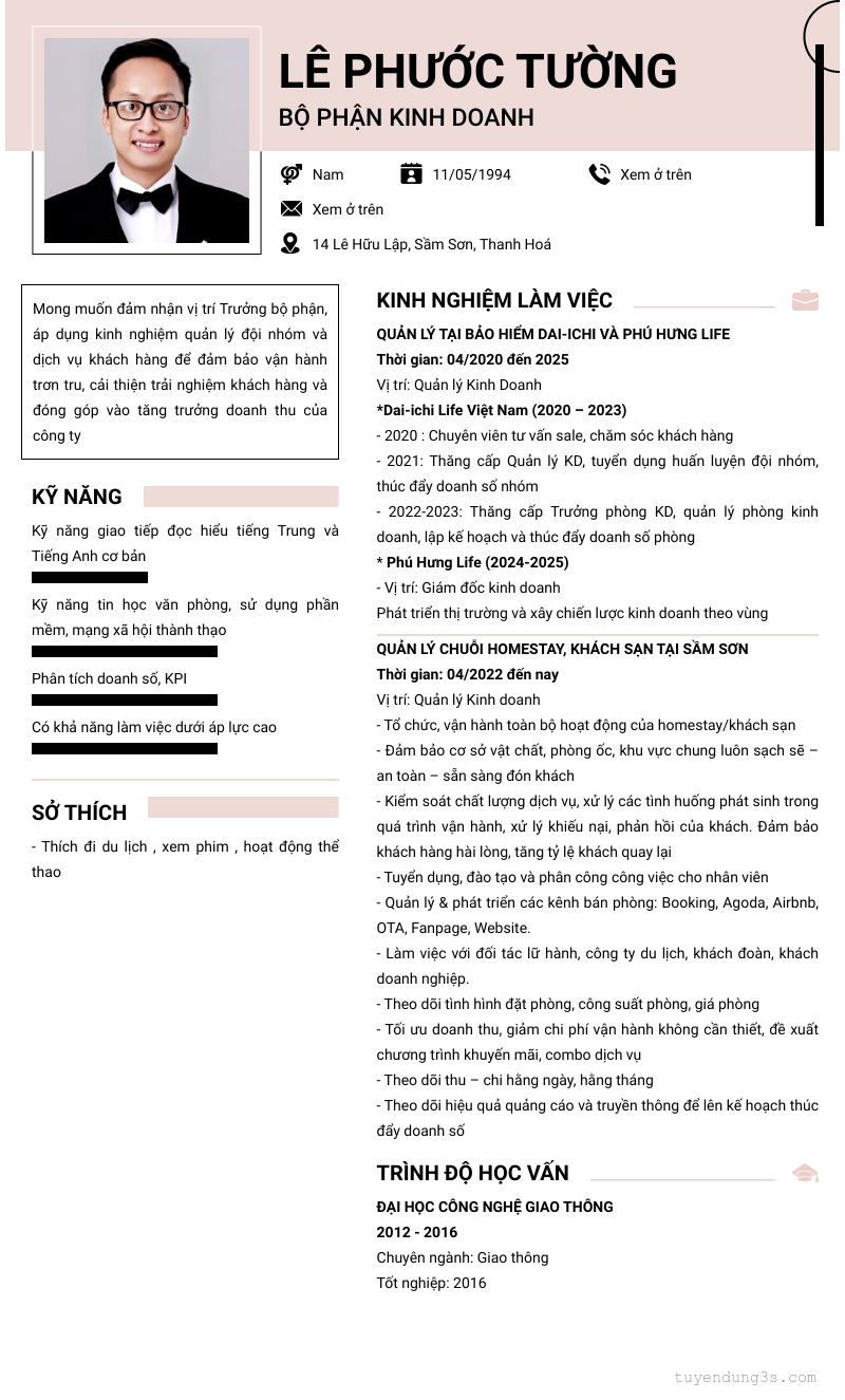 Mở xem thông tin đầy đủ ứng viên LÊ PHƯỚC TƯỜNG chỉ với 2 điểm. Ứng viên được cập nhật ngày 05/01/2026