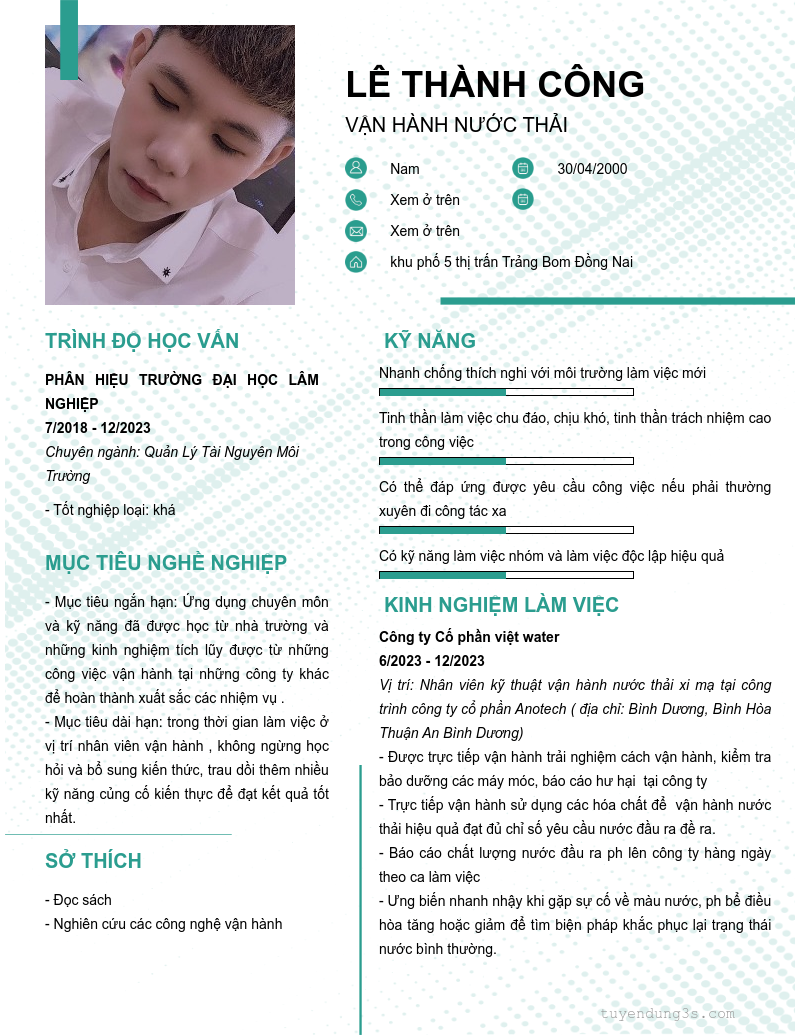 Mở xem thông tin đầy đủ ứng viên Lê Thành Công chỉ với 2 điểm. Ứng viên được cập nhật ngày 25/01/2024