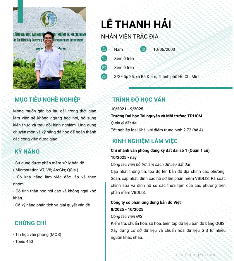 Mở xem thông tin đầy đủ ứng viên Lê Thanh HẢI chỉ với 2 điểm. Ứng viên được cập nhật ngày 25/12/2025