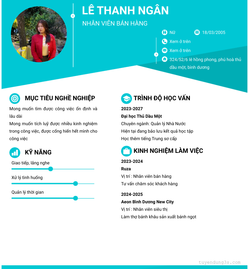 Mở xem thông tin đầy đủ ứng viên Lê Thanh Ngân chỉ với 2 điểm. Ứng viên được cập nhật ngày 03/12/2025