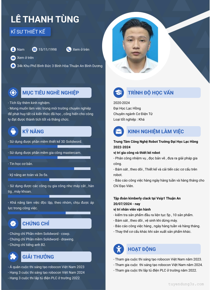 Mở xem thông tin đầy đủ ứng viên Lê Thanh Tùng chỉ với 2 điểm. Ứng viên được cập nhật ngày 23/02/2026