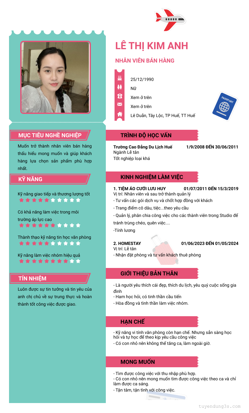 Mở xem thông tin đầy đủ ứng viên LÊ THỊ KIM ANH chỉ với 2 điểm. Ứng viên được cập nhật ngày 12/07/2024