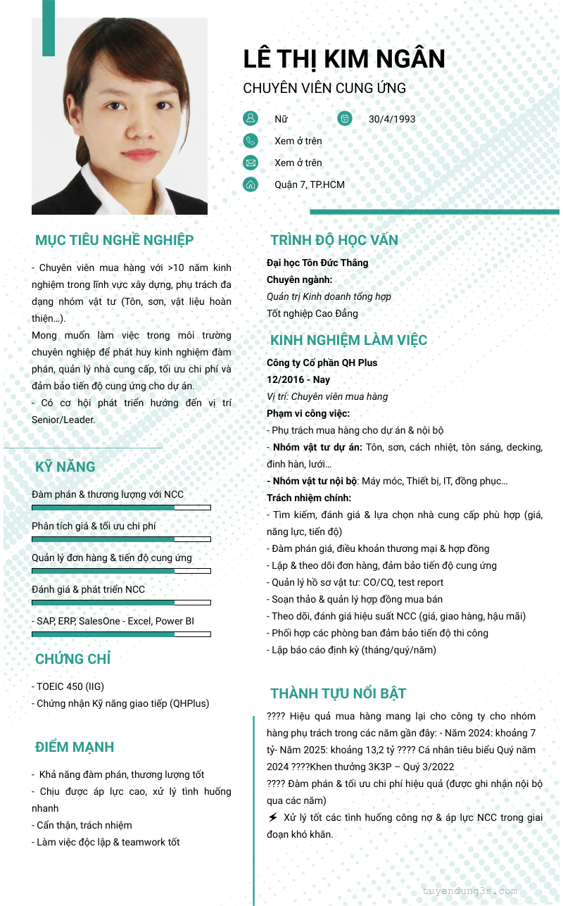 Vị trí: cHUYÊN VIÊN CUNG ỨNG