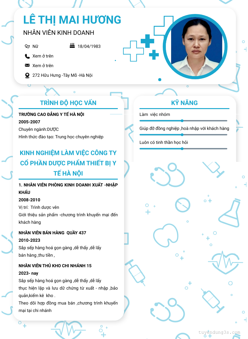 Mở xem thông tin đầy đủ ứng viên LÊ THỊ MAI HƯƠNG chỉ với 2 điểm. Ứng viên được cập nhật ngày 17/11/2025