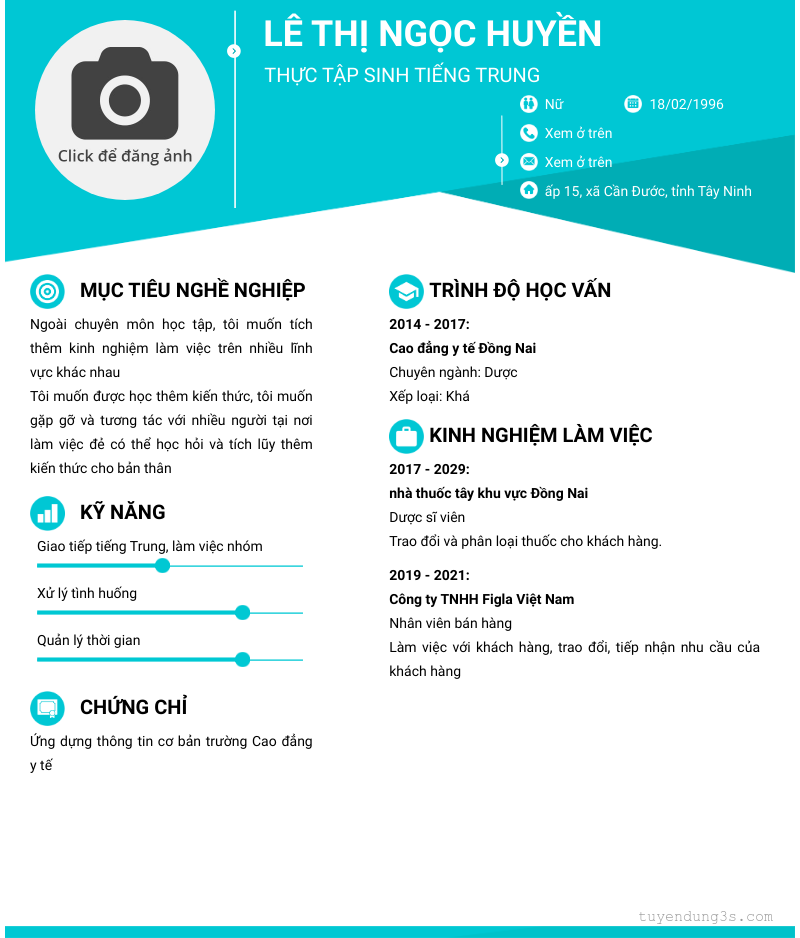 Nơi ở hiện tại: ấp 15, xã Cần Đước, tỉnh Tây Ninh