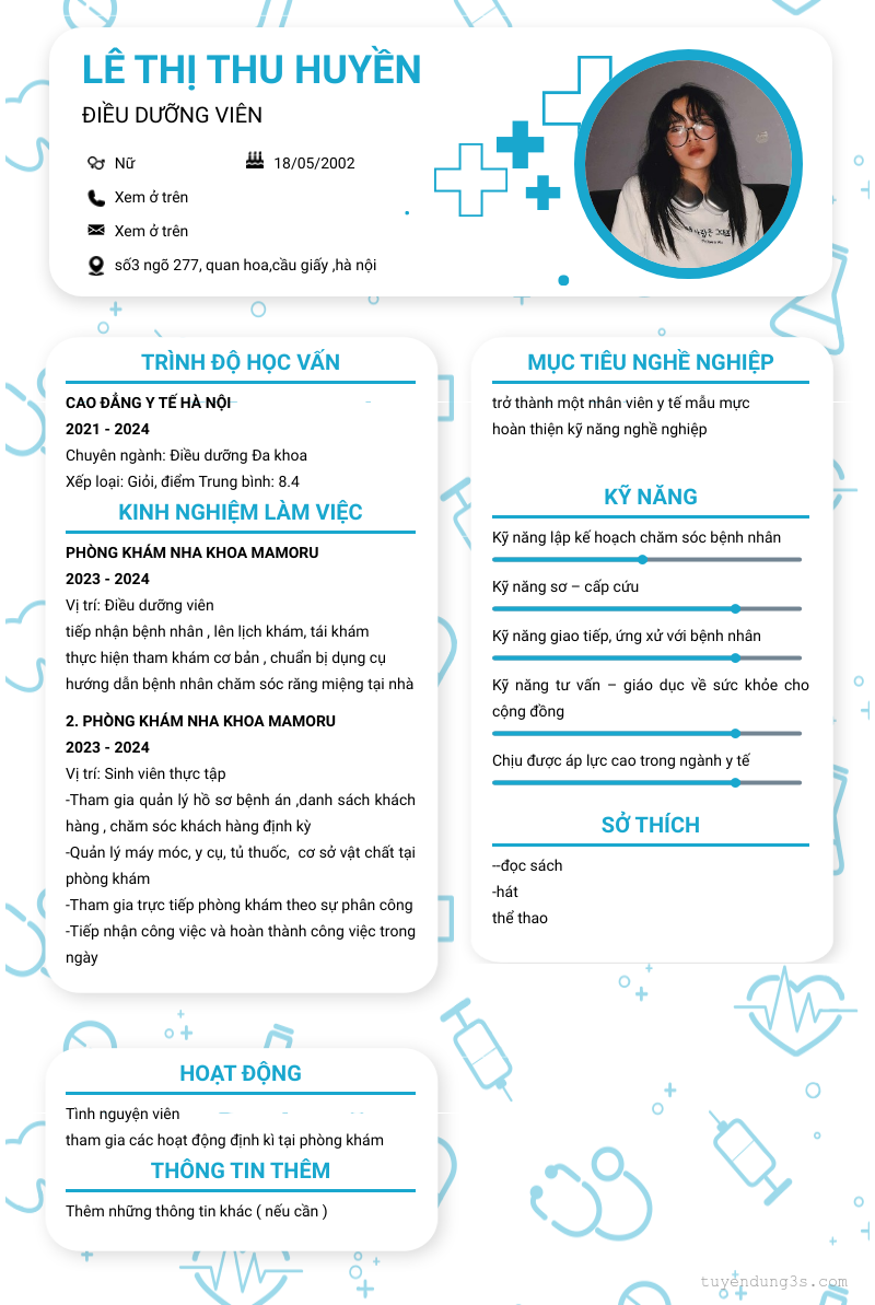 Mở xem thông tin đầy đủ ứng viên Lê Thị Thu Huyền chỉ với 2 điểm. Ứng viên được cập nhật ngày 21/05/2024