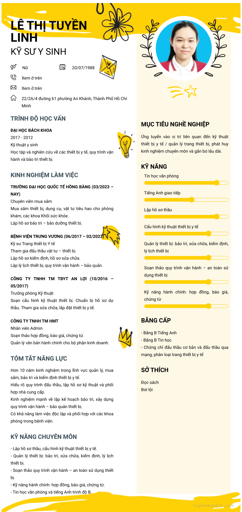 Mở xem thông tin đầy đủ ứng viên LÊ THỊ TUYỀN LINH chỉ với 2 điểm. Ứng viên được cập nhật ngày 10/12/2025