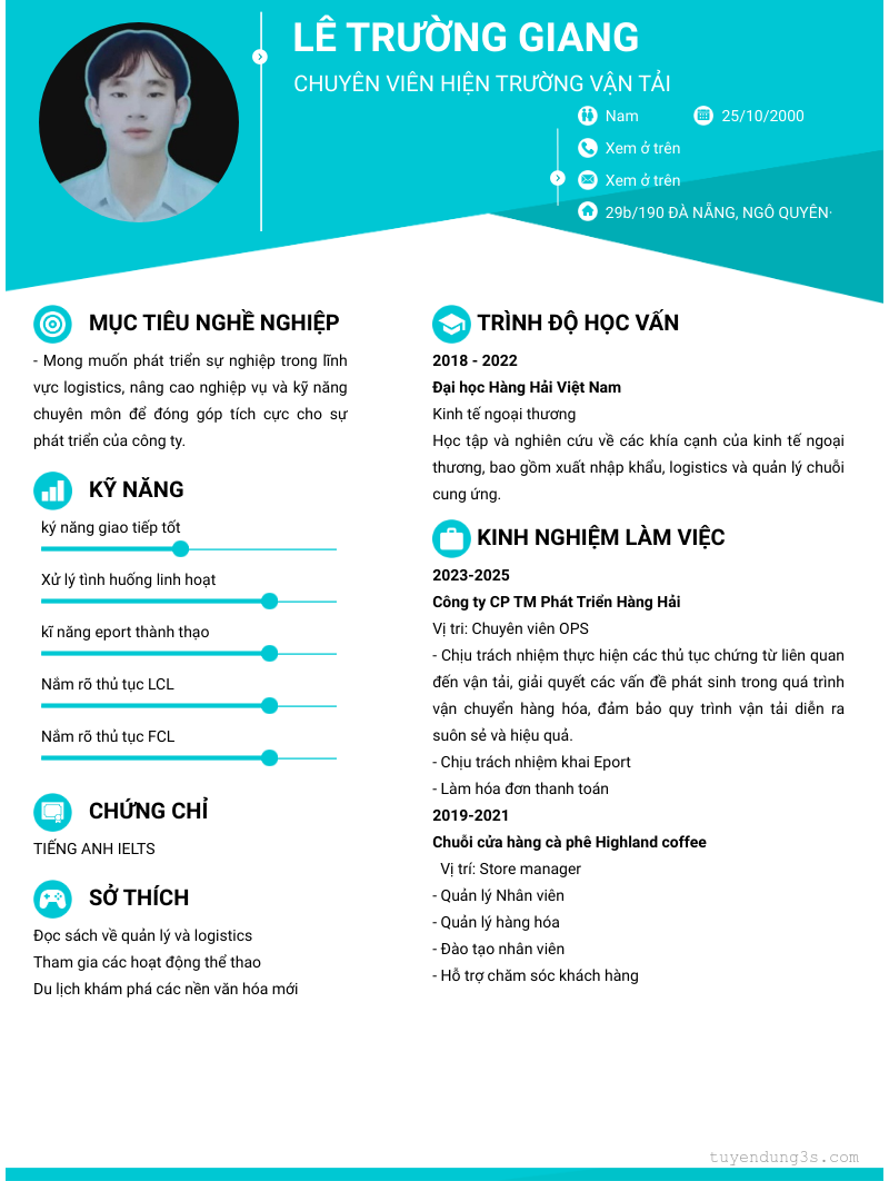 Mở xem thông tin đầy đủ ứng viên LÊ TRƯỜNG GIANG chỉ với 2 điểm. Ứng viên được cập nhật ngày 19/12/2025