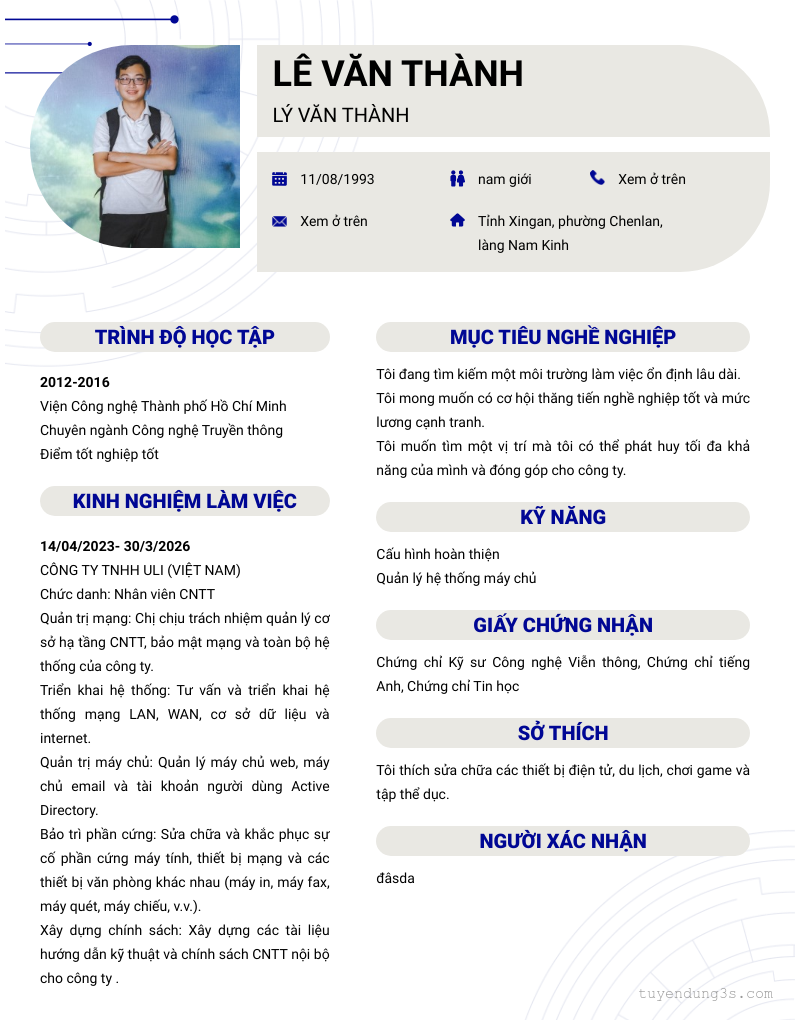Mở xem thông tin đầy đủ ứng viên Lê Văn Thành chỉ với 2 điểm. Ứng viên được cập nhật ngày 30/01/2026