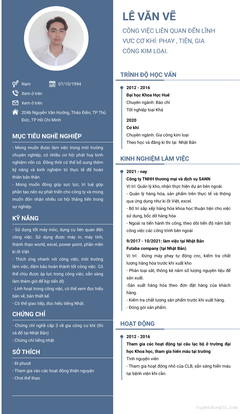 Mở xem thông tin đầy đủ ứng viên Lê Văn Vẽ chỉ với 2 điểm. Ứng viên được cập nhật ngày 25/12/2023
