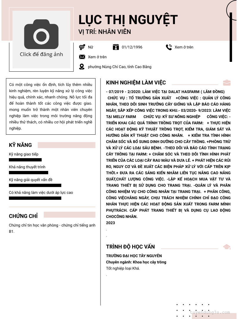 Mở xem thông tin đầy đủ ứng viên Lục Thị Nguyệt chỉ với 2 điểm. Ứng viên được cập nhật ngày 11/12/2025