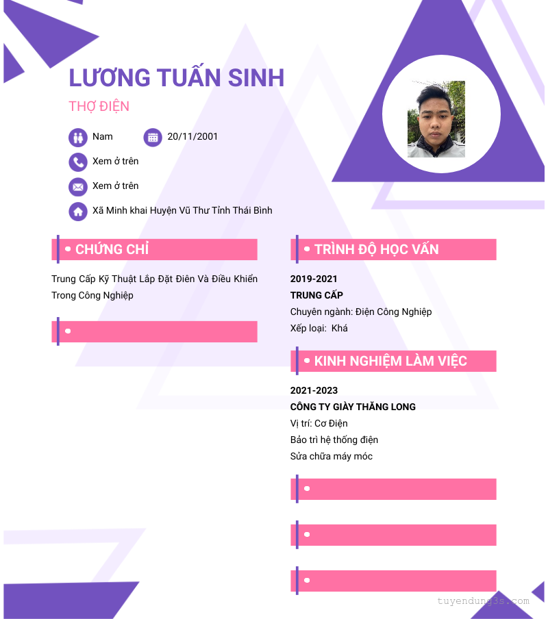 Nơi ở hiện tại: Xã Minh khai Huyện Vũ Thư Tỉnh Thái Bình