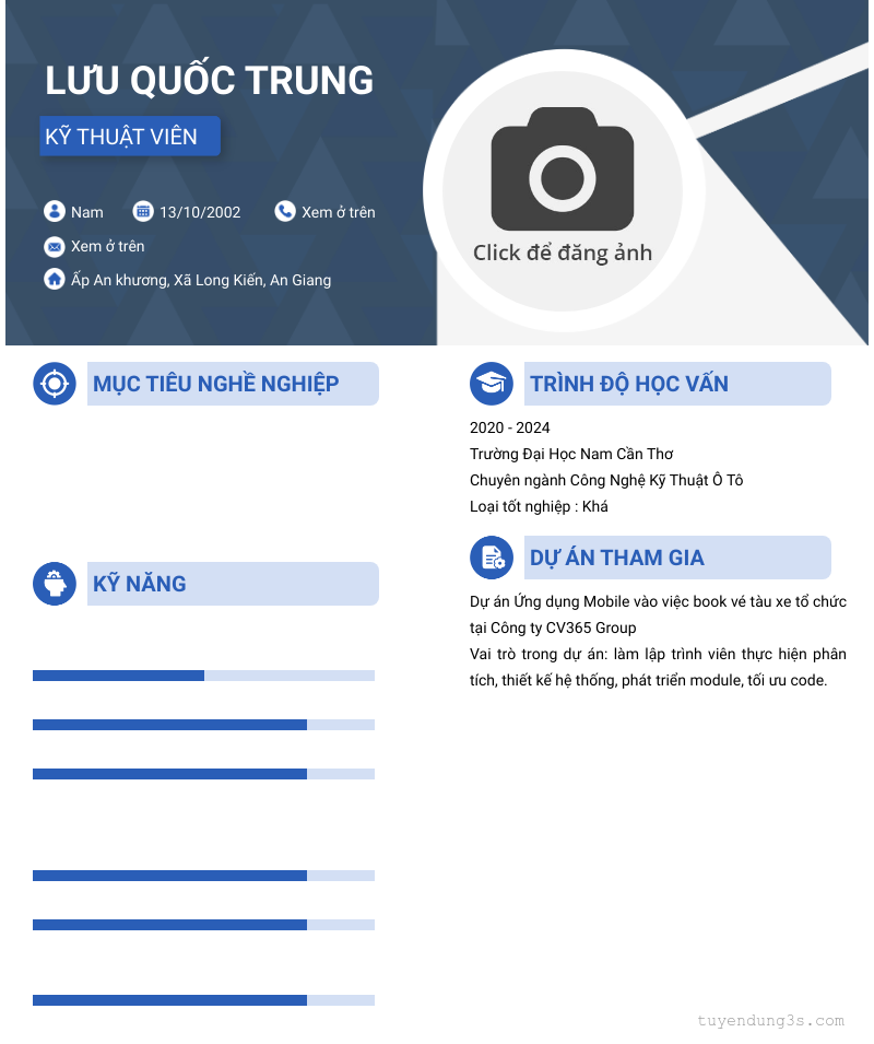 Mở xem thông tin đầy đủ ứng viên Lưu Quốc Trung chỉ với 2 điểm. Ứng viên được cập nhật ngày 14/04/2026