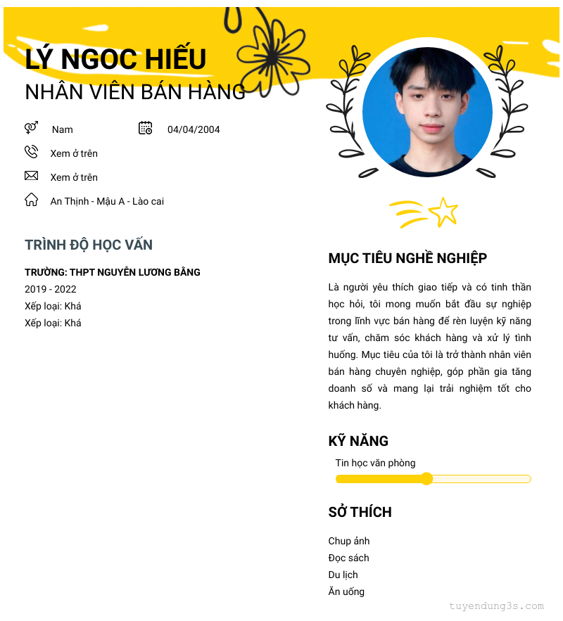 Mở xem thông tin đầy đủ ứng viên LÝ NGOC HIẾU chỉ với 2 điểm. Ứng viên được cập nhật ngày 12/09/2025