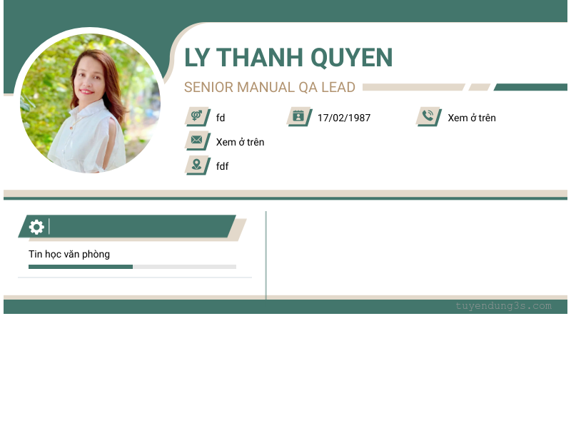 Mở xem thông tin đầy đủ ứng viên LY THANH QUYEN chỉ với 2 điểm. Ứng viên được cập nhật ngày 29/11/2025