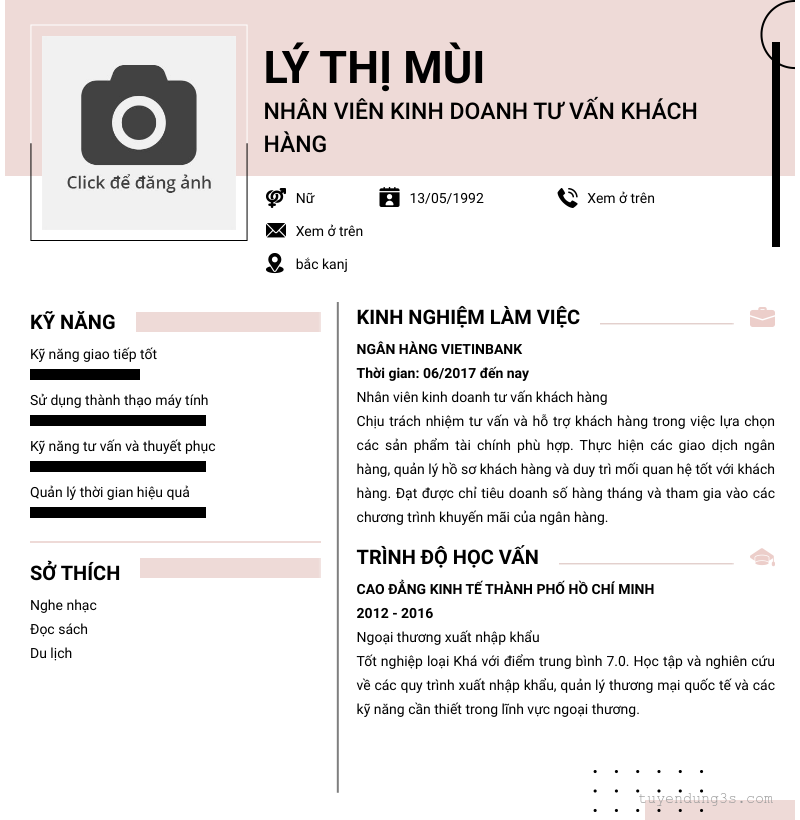 Mở xem thông tin đầy đủ ứng viên Lý Thị Mùi chỉ với 2 điểm. Ứng viên được cập nhật ngày 24/11/2025