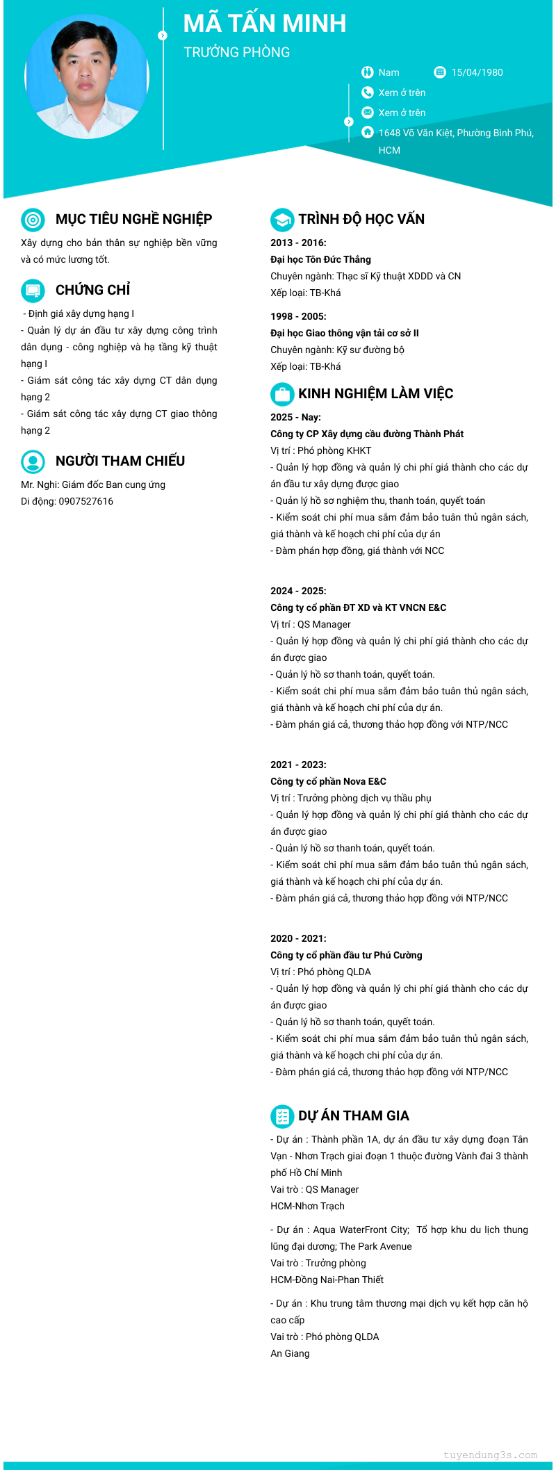 Mở xem thông tin đầy đủ ứng viên MÃ TẤN MINH chỉ với 2 điểm. Ứng viên được cập nhật ngày 01/02/2026