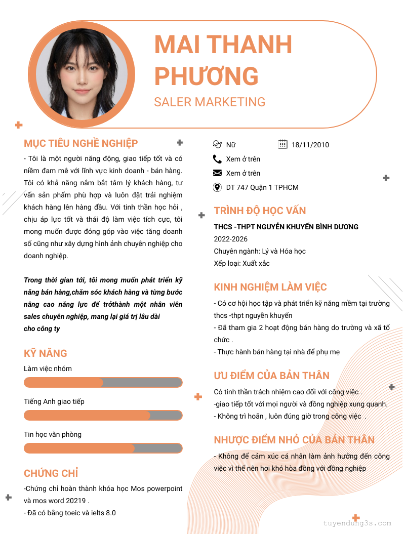 Mở xem thông tin đầy đủ ứng viên MAI THANH PHƯƠNG chỉ với 2 điểm. Ứng viên được cập nhật ngày 07/04/2026