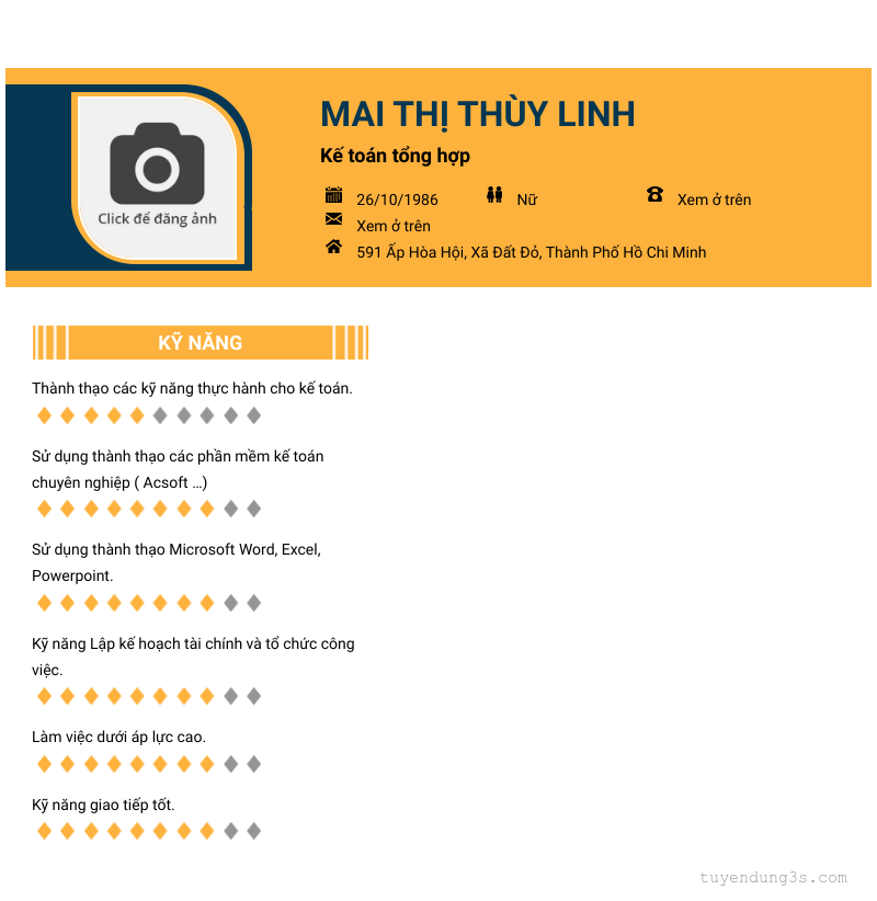 Mở xem thông tin đầy đủ ứng viên MAI THỊ THÙY LINH chỉ với 2 điểm. Ứng viên được cập nhật ngày 05/01/2026
