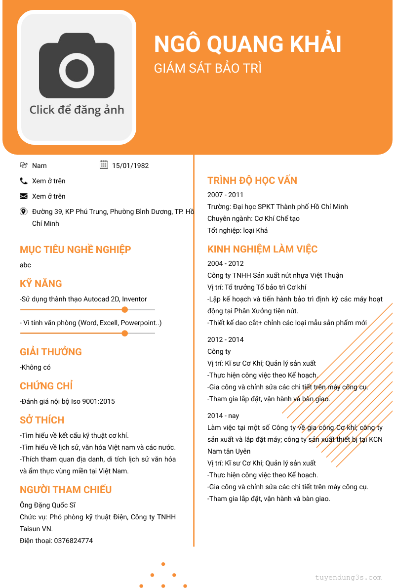 Mở xem thông tin đầy đủ ứng viên Ngô Quang Khải chỉ với 2 điểm. Ứng viên được cập nhật ngày 12/12/2025