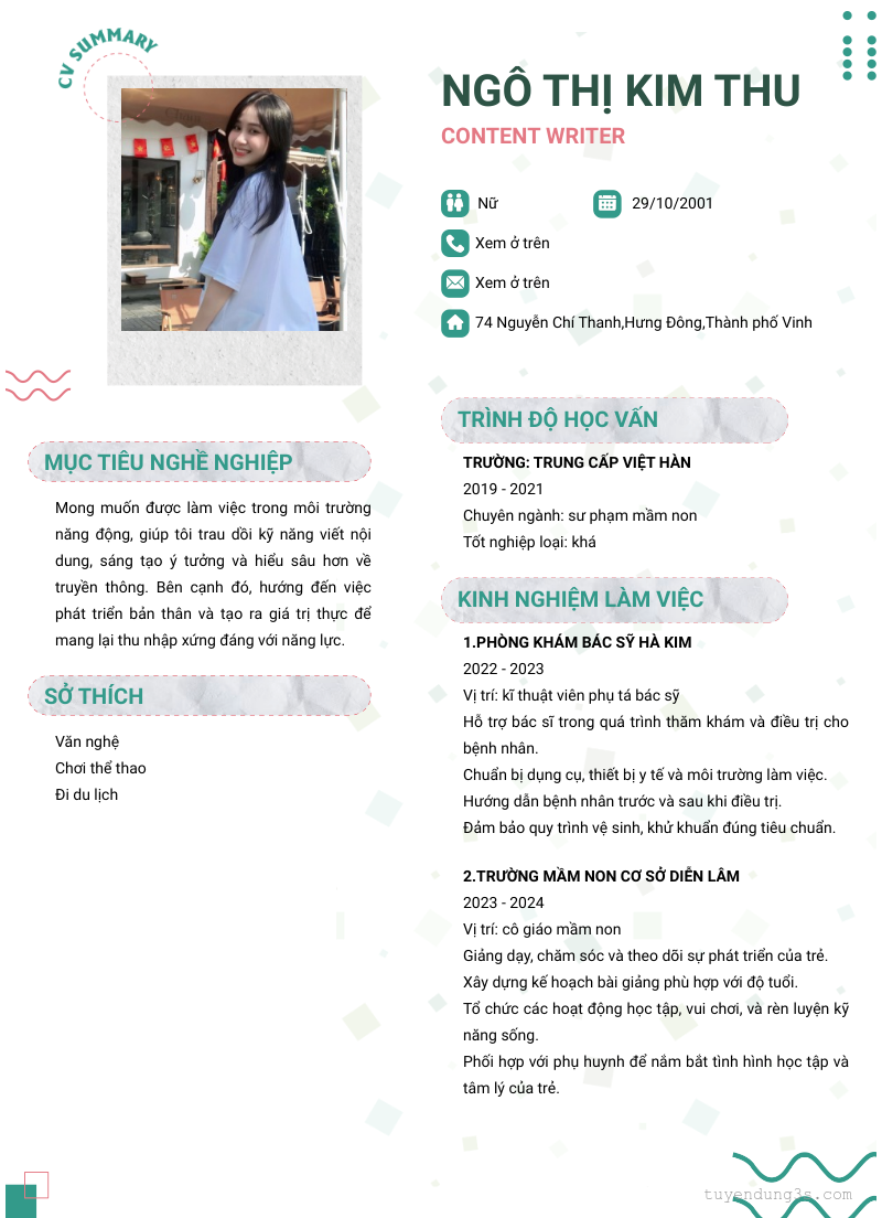 Mở xem thông tin đầy đủ ứng viên Ngô Thị Kim Thu chỉ với 2 điểm. Ứng viên được cập nhật ngày 08/10/2025