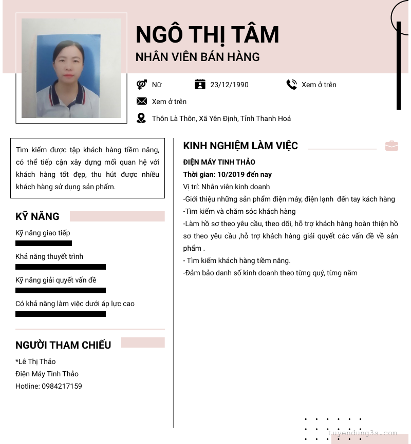 NGÔ THỊ TÂM ( Đang tìm việc )