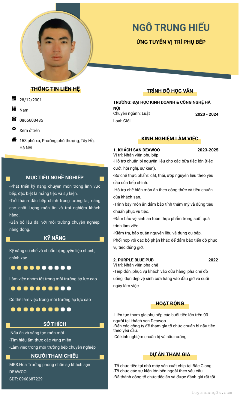 Mở xem thông tin đầy đủ ứng viên Ngô Trung Hiếu chỉ với 2 điểm. Ứng viên được cập nhật ngày 17/03/2026