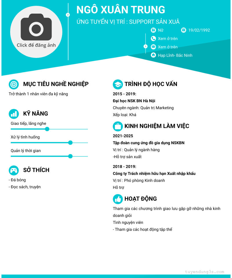 ứng tuyển vị trí : support sản xuâ
