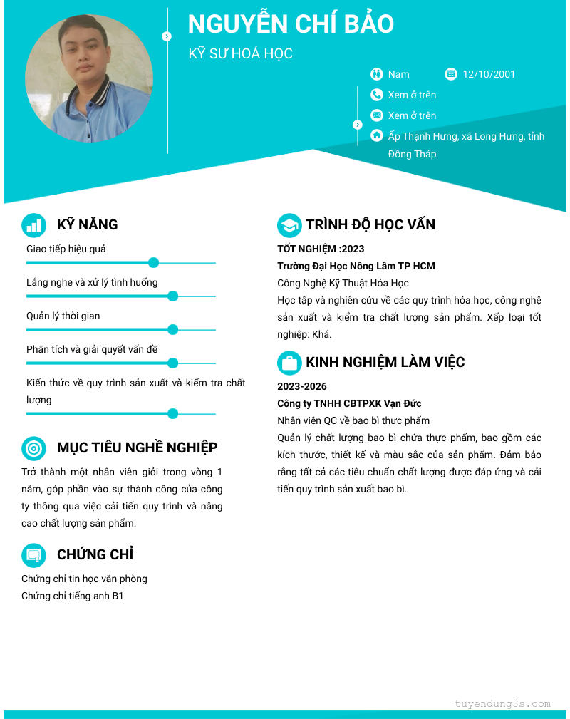 Mở xem thông tin đầy đủ ứng viên Nguyễn Chí Bảo chỉ với 2 điểm. Ứng viên được cập nhật ngày 26/02/2026