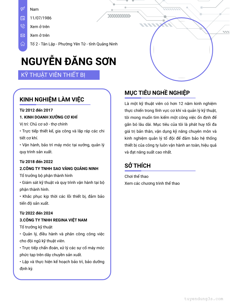 Mở xem thông tin đầy đủ ứng viên NGUYỄN ĐĂNG SƠN chỉ với 2 điểm. Ứng viên được cập nhật ngày 24/02/2026