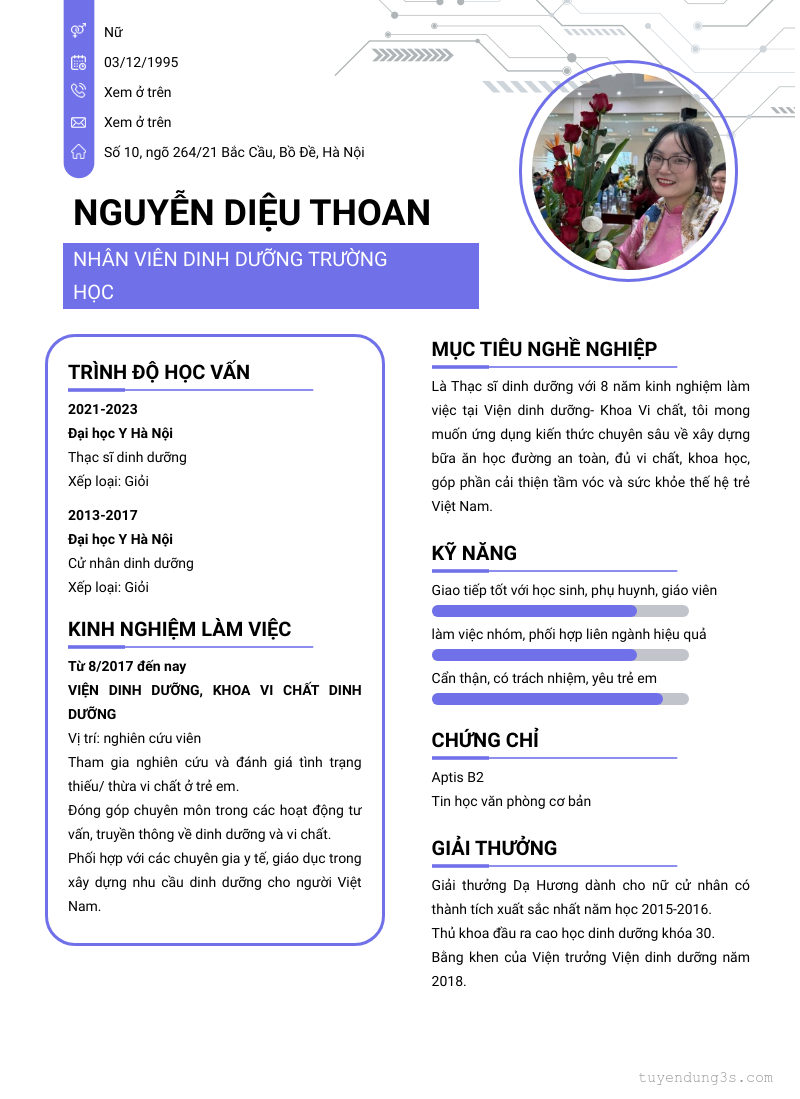 Mở xem thông tin đầy đủ ứng viên Nguyễn Diệu Thoan chỉ với 2 điểm. Ứng viên được cập nhật ngày 18/12/2025