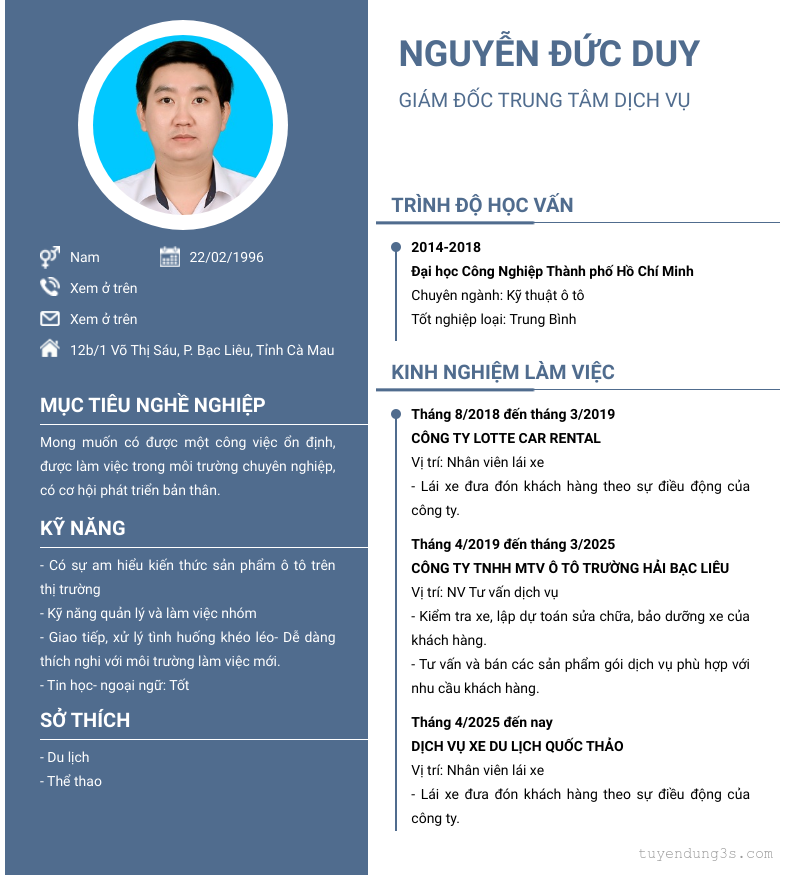 Mở xem thông tin đầy đủ ứng viên NGUYỄN ĐỨC DUY chỉ với 2 điểm. Ứng viên được cập nhật ngày 20/01/2026
