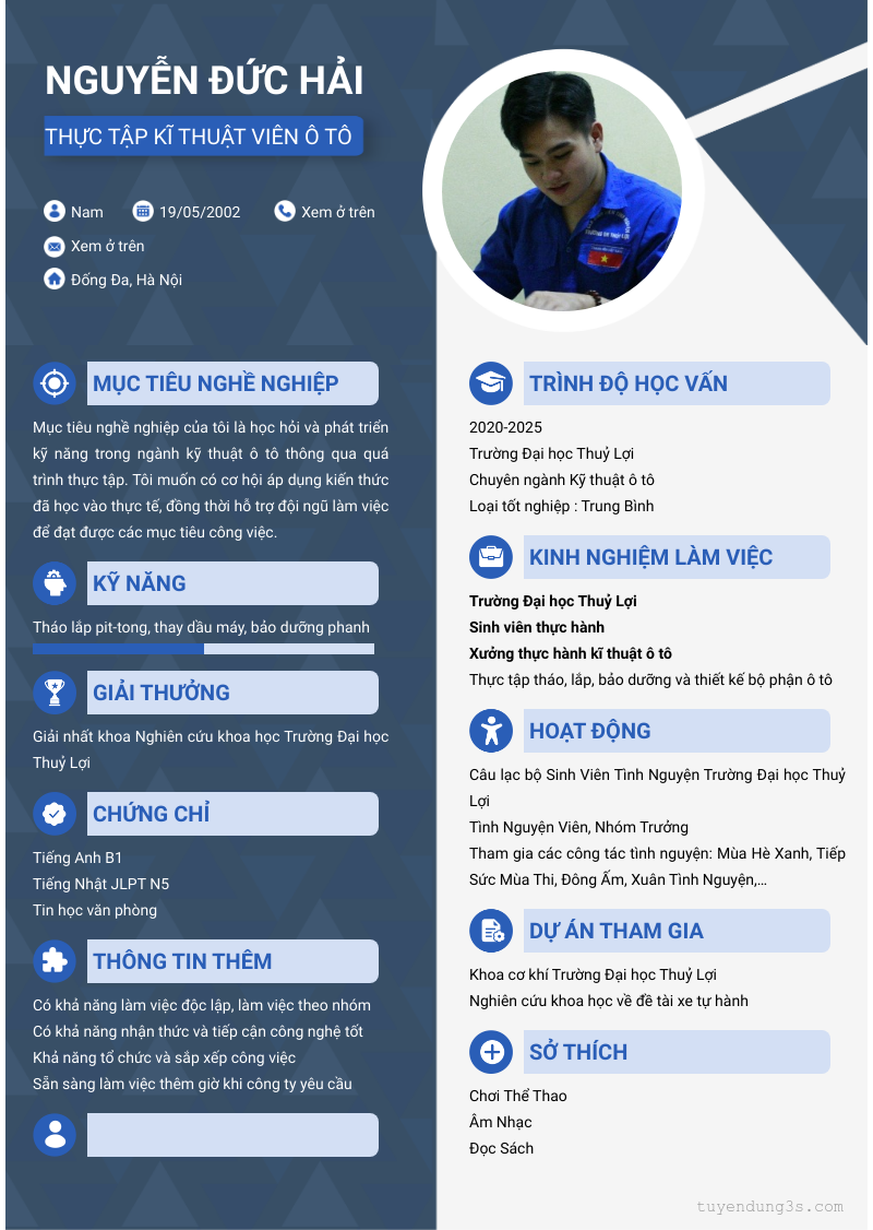 Vị trí: Thực tập kĩ thuật viên ô tô