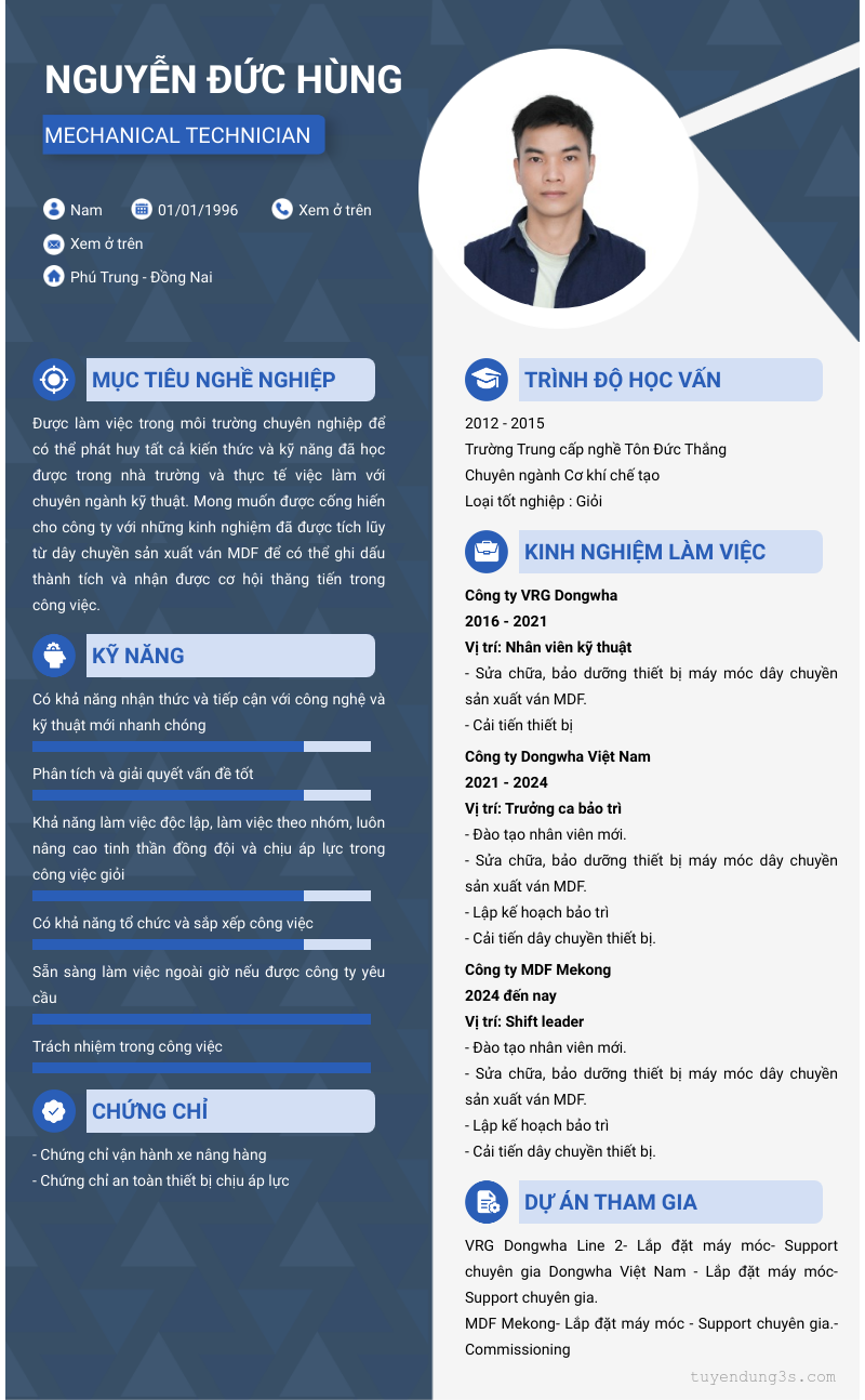 Mở xem thông tin đầy đủ ứng viên NGUYỄN ĐỨC HÙNG chỉ với 2 điểm. Ứng viên được cập nhật ngày 07/11/2025