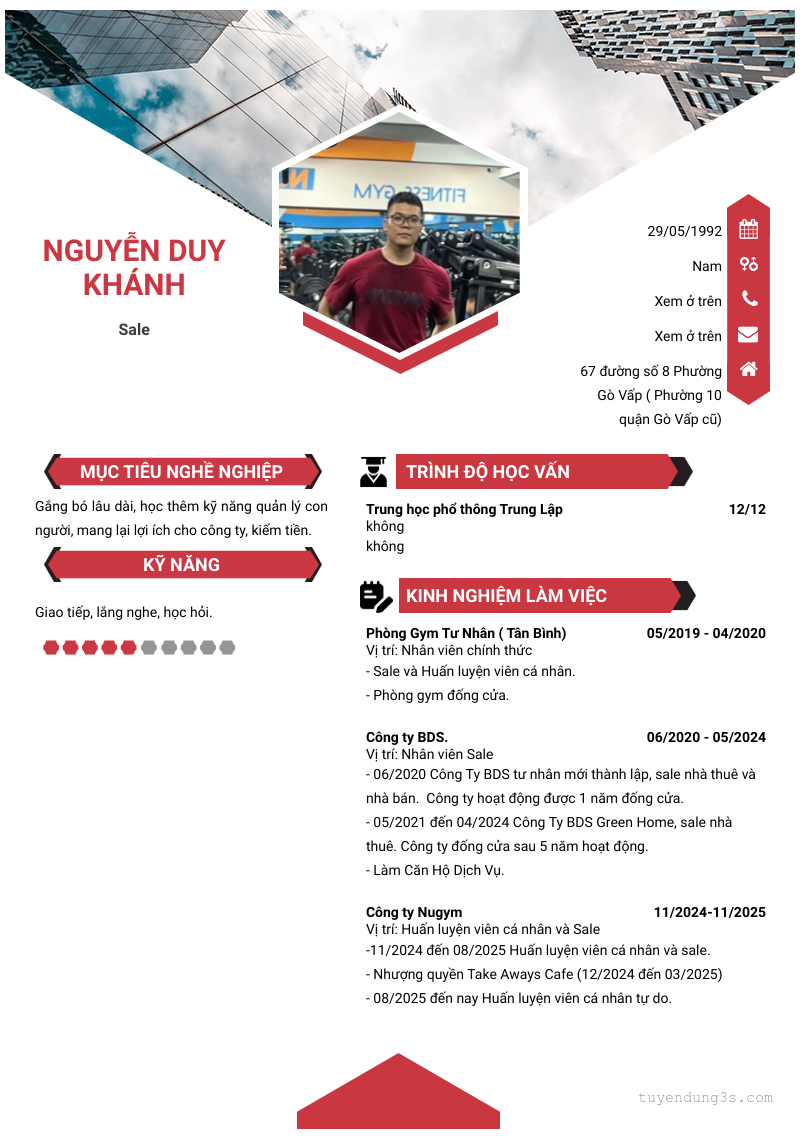 Mở xem thông tin đầy đủ ứng viên NGUYỄN DUY KHÁNH chỉ với 2 điểm. Ứng viên được cập nhật ngày 05/12/2025