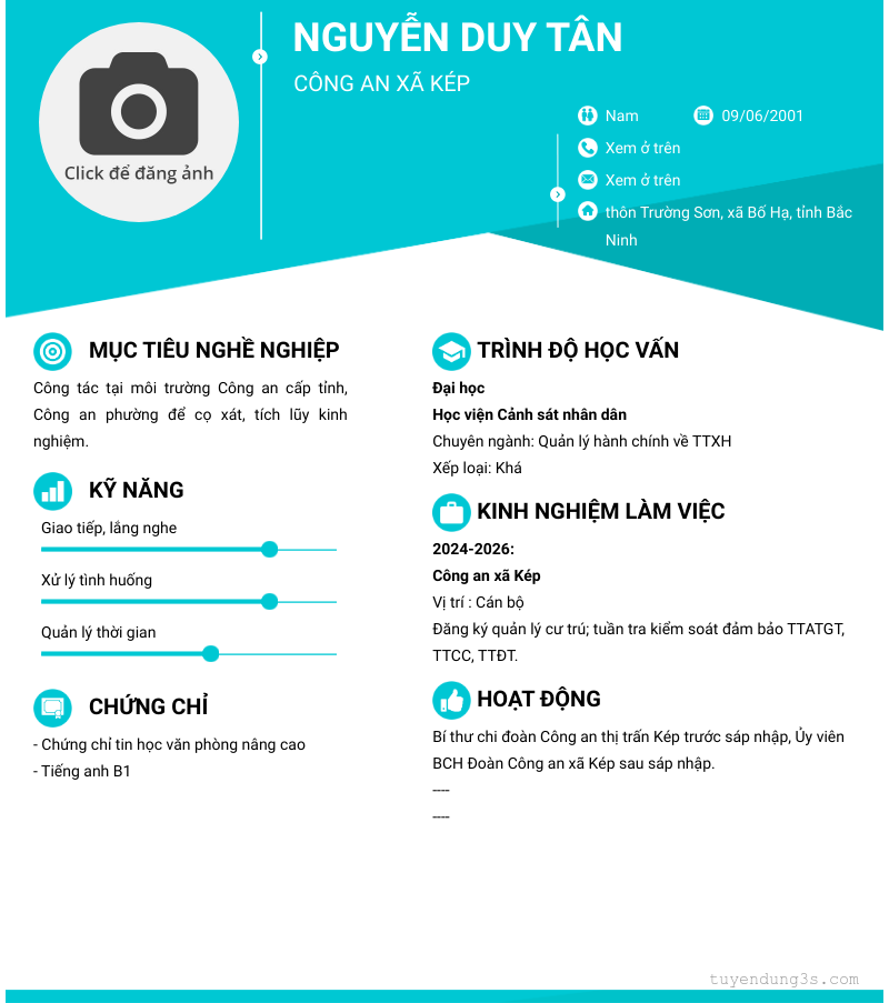 Mở xem thông tin đầy đủ ứng viên NGUYỄN DUY TÂN chỉ với 2 điểm. Ứng viên được cập nhật ngày 27/01/2026