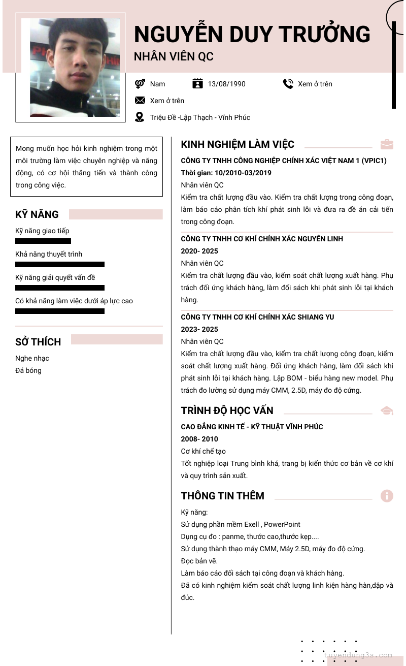 Mở xem thông tin đầy đủ ứng viên Nguyễn Duy Trưởng chỉ với 2 điểm. Ứng viên được cập nhật ngày 25/12/2025