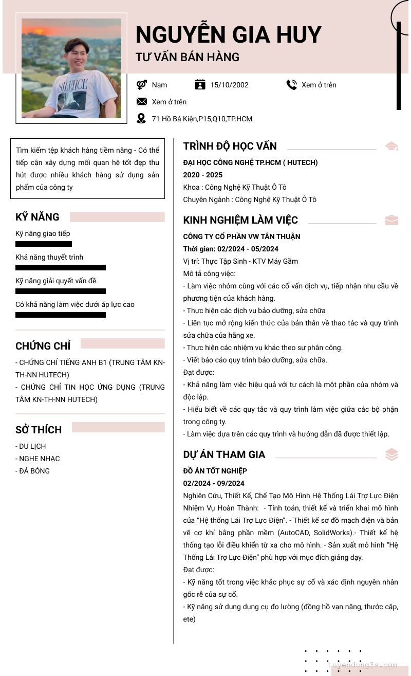 Mở xem thông tin đầy đủ ứng viên Nguyễn Gia Huy chỉ với 2 điểm. Ứng viên được cập nhật ngày 25/09/2025
