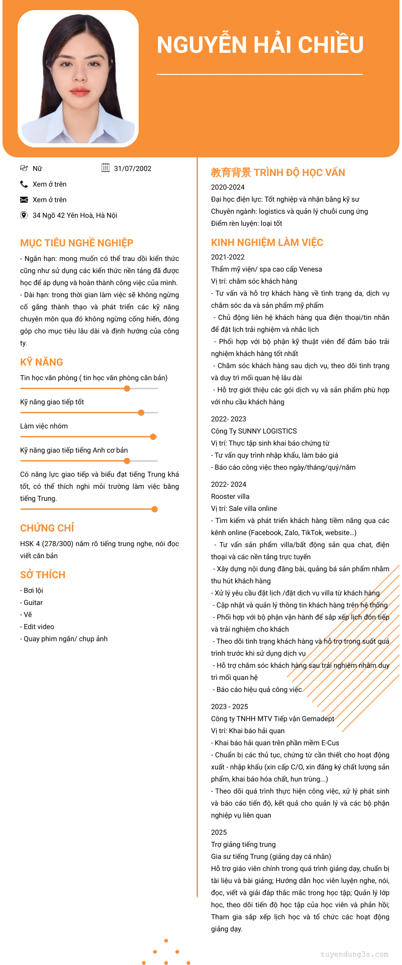 Mở xem thông tin đầy đủ ứng viên Nguyễn Hải Chiều chỉ với 2 điểm. Ứng viên được cập nhật ngày 03/04/2026