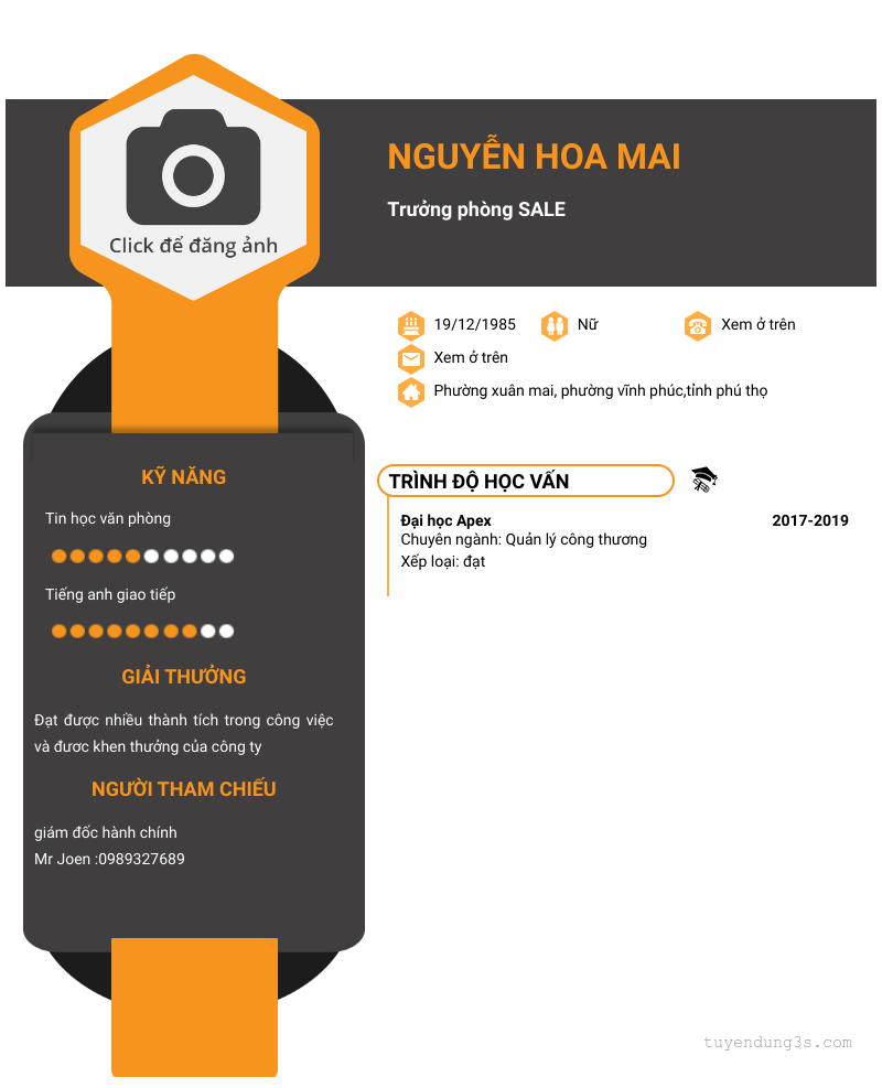 Nơi ở hiện tại: Phường xuân mai, phường vĩnh phúc,tỉnh phú thọ