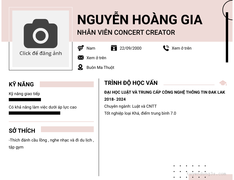 Mở xem thông tin đầy đủ ứng viên NGuyỄN HOÀNG GIA chỉ với 2 điểm. Ứng viên được cập nhật ngày 26/03/2026