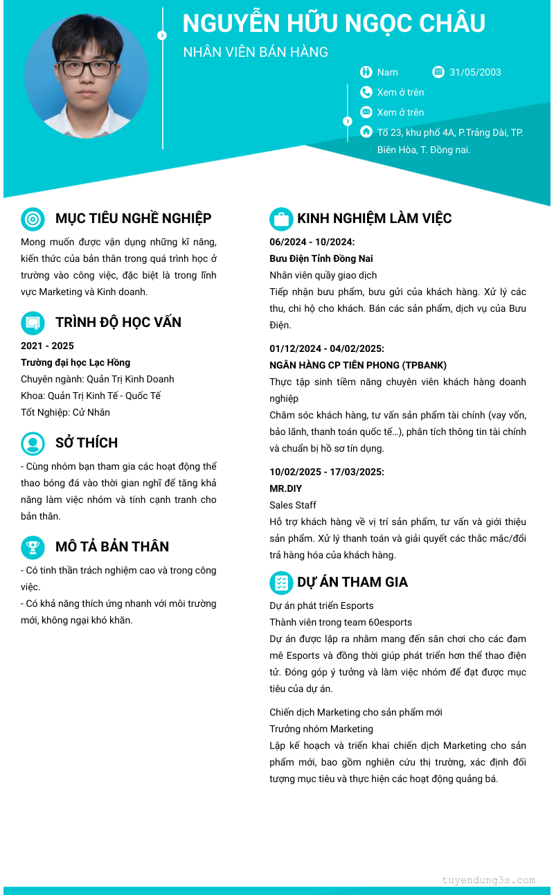 Mở xem thông tin đầy đủ ứng viên Nguyễn Hữu Ngọc Châu chỉ với 2 điểm. Ứng viên được cập nhật ngày 02/04/2026